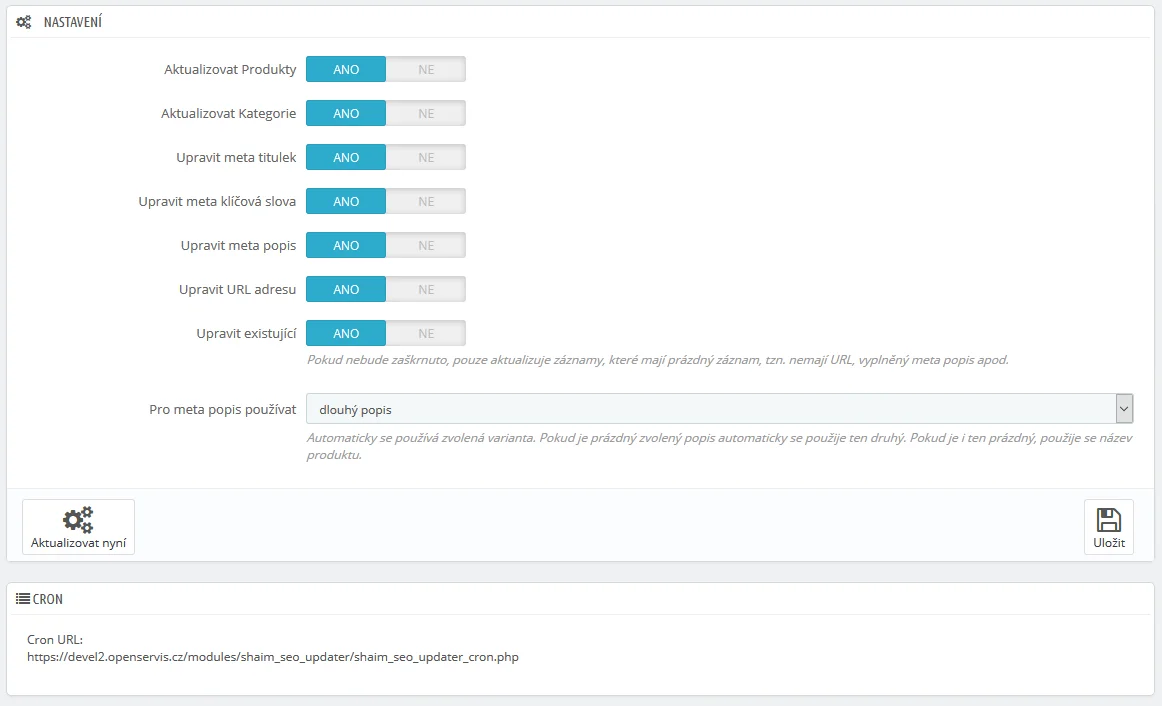| Název modulu na FTP | shaim_seo_updater |