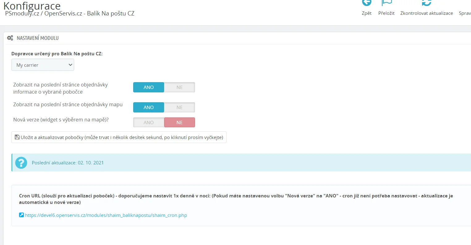 Tato stránka zůstává aktivní, abychom mohli informovat zákazníky o této změně a předešli tak dotazům týkajícím se modulu. Doporučujeme využít modul "Balíkovna", který bude nadále podporován Českou poštou.