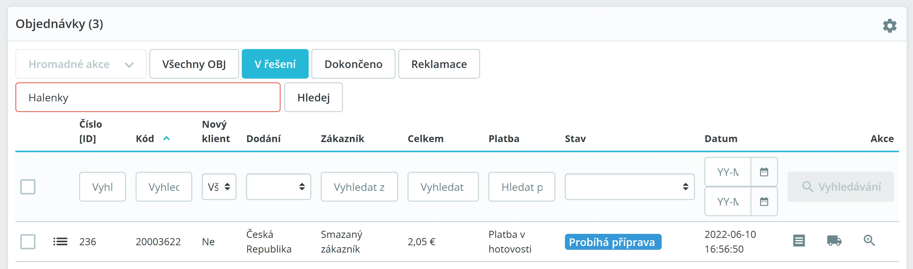 Stačí jedno kliknutí a ihned uvidíte objednávky s různými zvolenými stavy. Zároveň umí modul vyhledávat fulltextově dle názvu/kódu produktu.