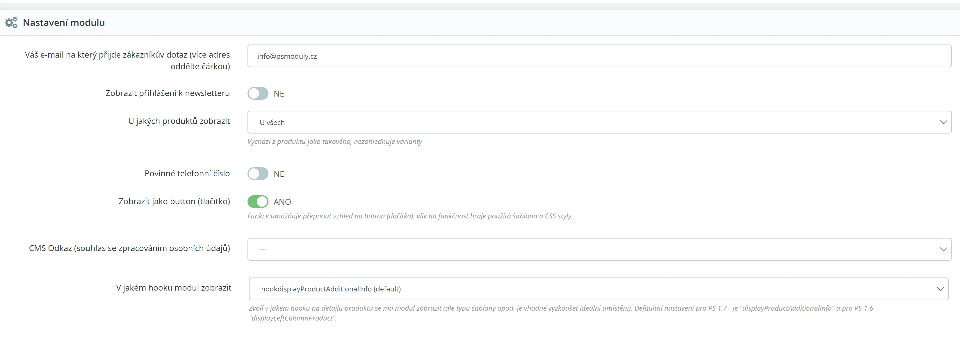 Krásný a jednoduchý modul na dotaz na produkt. Doporučujeme.