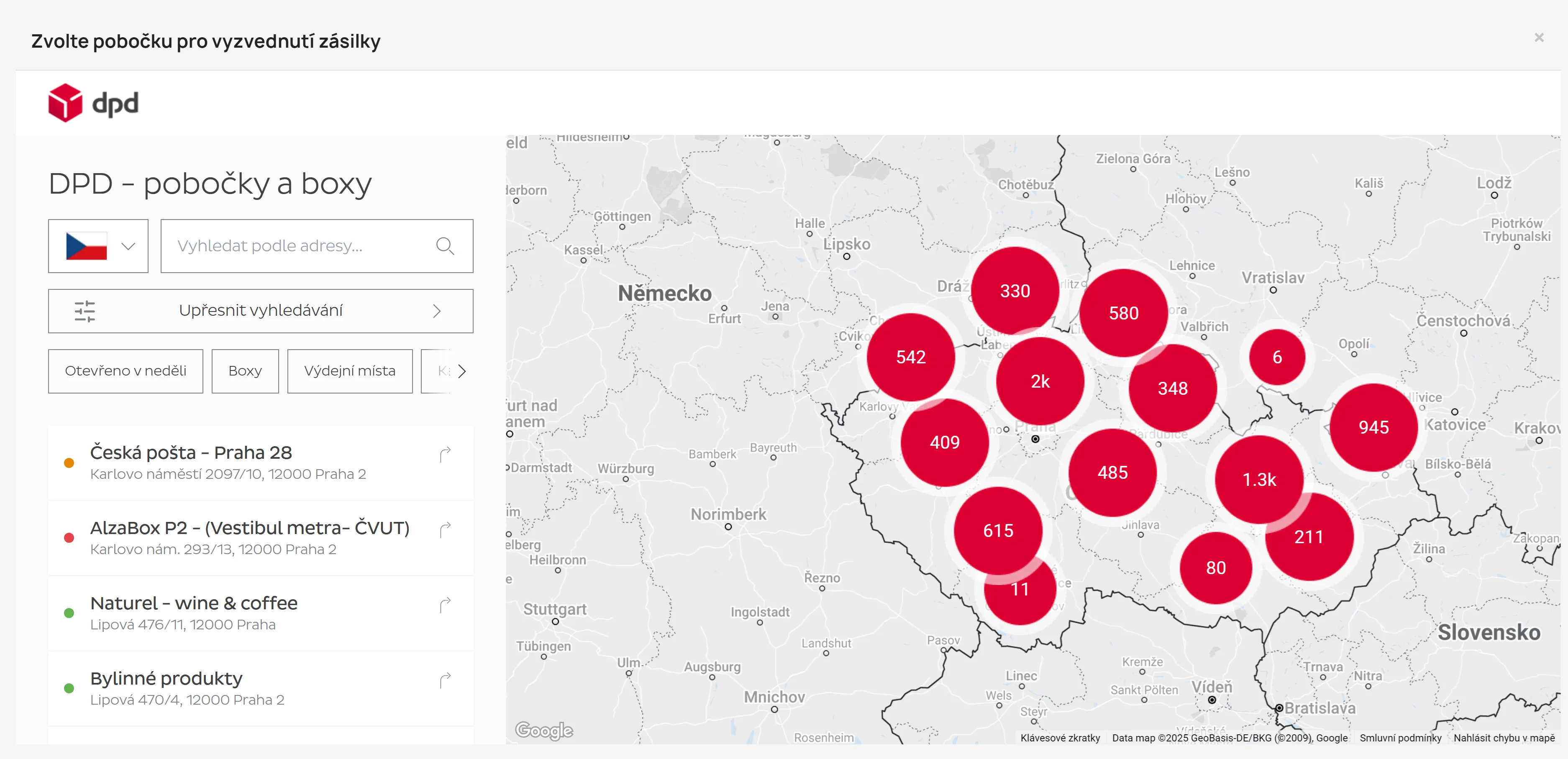 Modul DPD ParcelShop (Pickup) umožňuje vašim zákazníkům jednoduše zvolit dopravu na vybraný parcelshop. Tímto způsobem si mohou vybrat pobočku, na které si chtějí balík vyzvednout, což značně usnadňuje celý proces doručení.