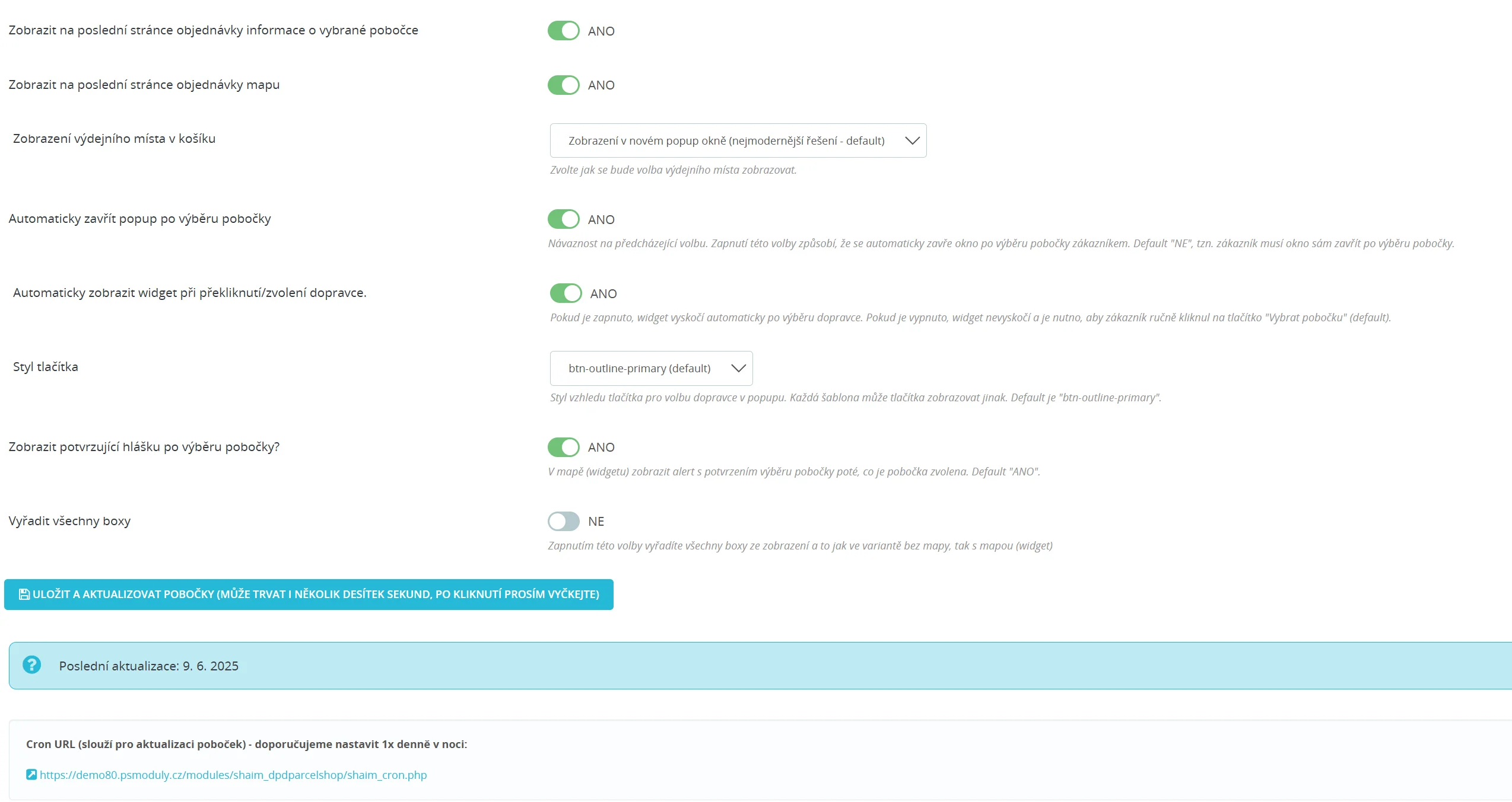 | Název modulu na FTP | shaim_dpdparcelshop |