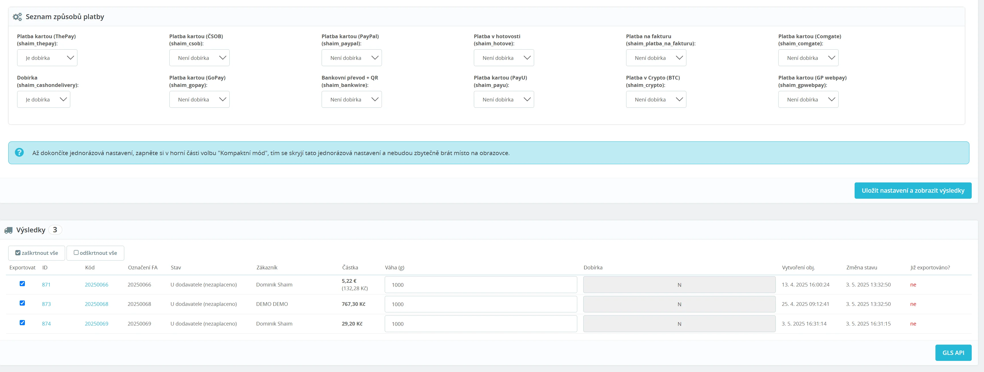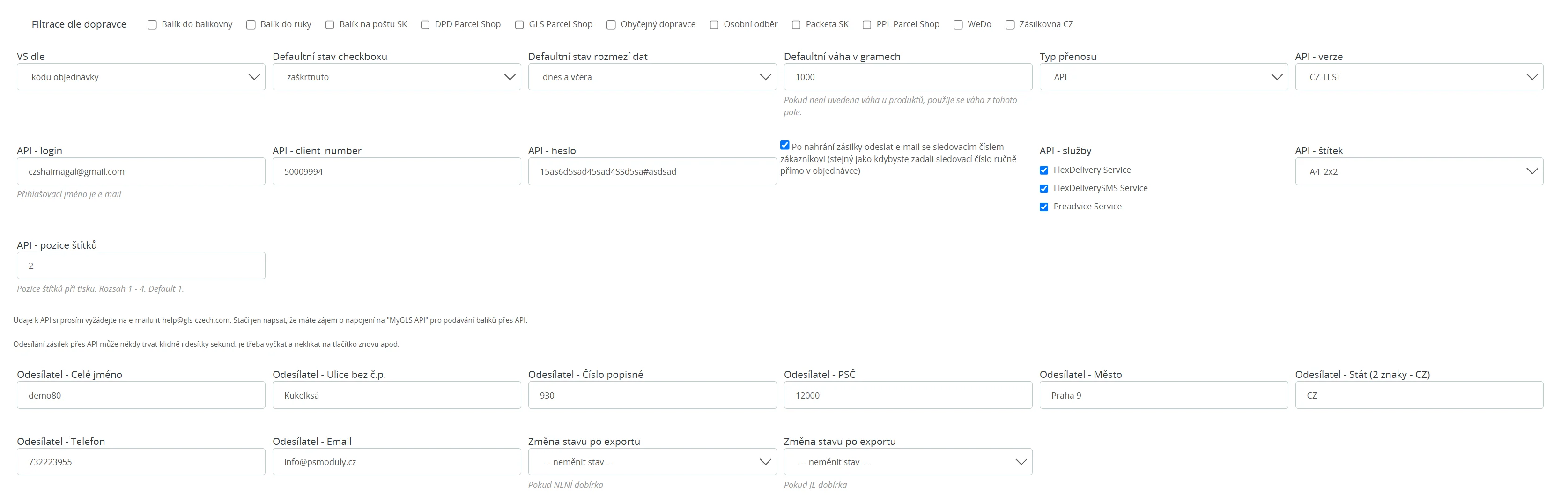 Nově od roku 2025 modul podporuje také API napojení (MyGLS API), což rozšiřuje jeho funkčnost a usnadňuje obousměrnou komunikaci mezi vaším obchodem a GLS.