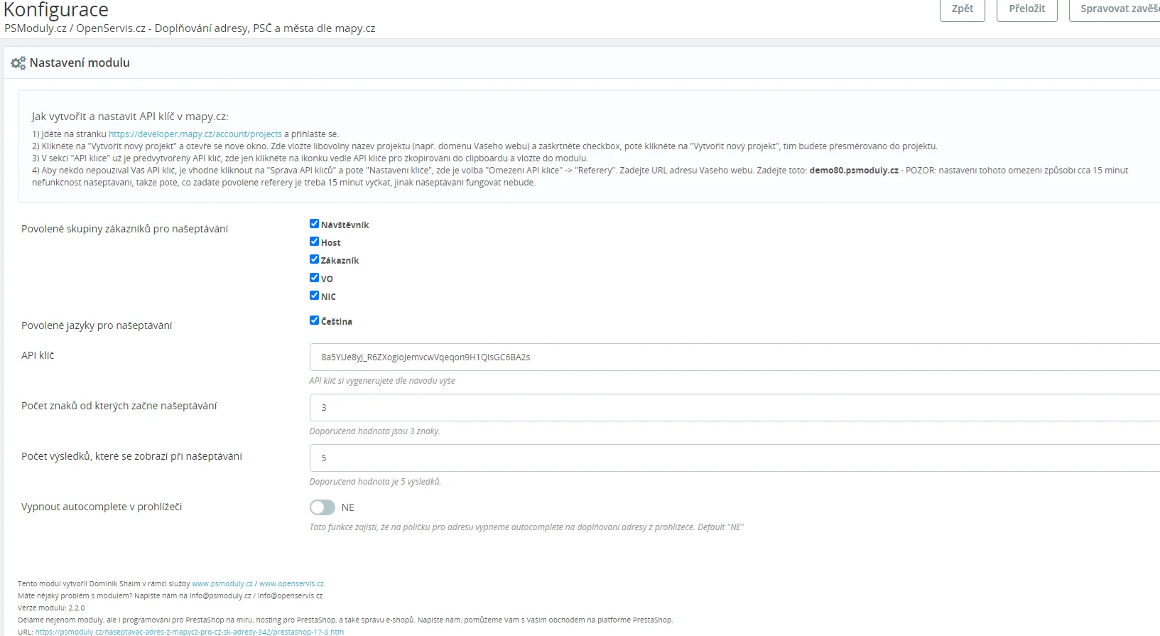 | Název modulu na FTP | shaim_naseptavac |