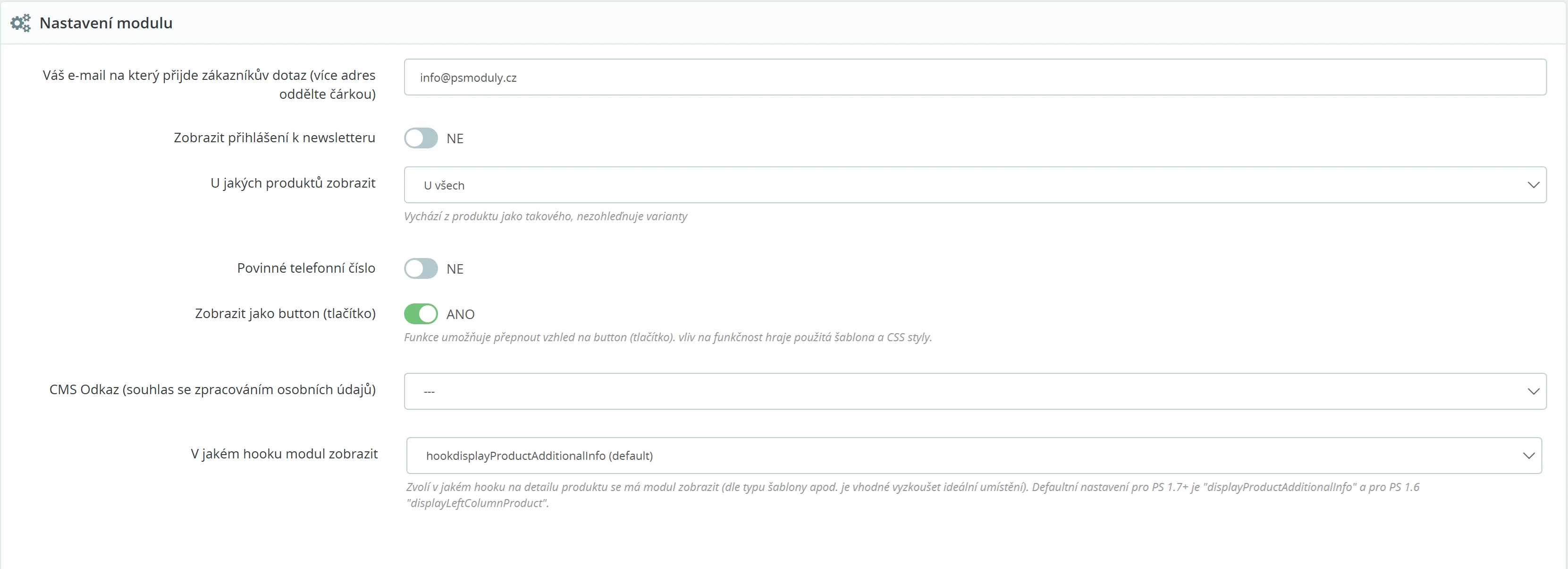 Dotaz zákazníka bude zaslán na e-mailovou adresu, kterou nastavíte v modulu. Je možné zadat více e-mailových adres oddělených čárkou, což zajišťuje, že na dotaz nezapomenete reagovat. Odpovědět můžete přímo na e-mail, který obdržíte, což umožňuje rychlou a efektivní komunikaci se zákazníkem.