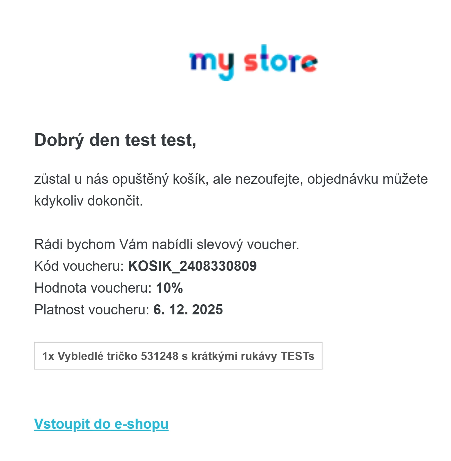 Do šablony můžete zahrnout například kód voucheru, který motivuje zákazníky k dokončení nákupu, nebo upravit texty podle vašeho stylu.