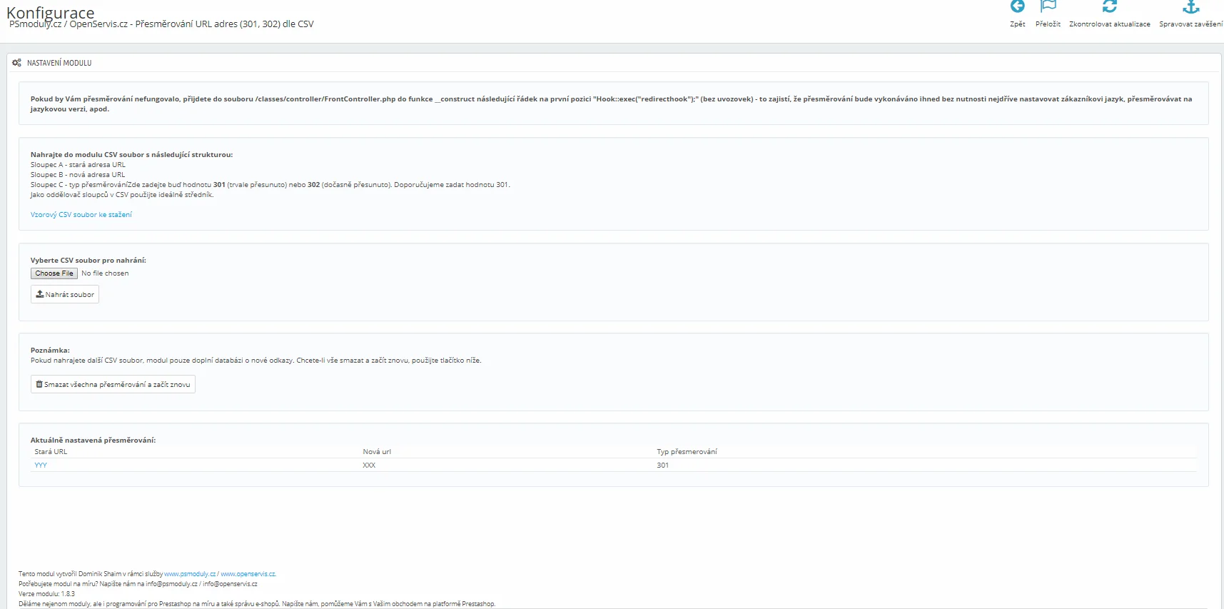 Díky tomuto modulu si můžete být jisti, že vaše přesměrování fungují správně a že neztratíte hodnotu svých URL adres během migrace nebo změn. Využijte náš modul a zjednodušte si správu svého e-shopu.