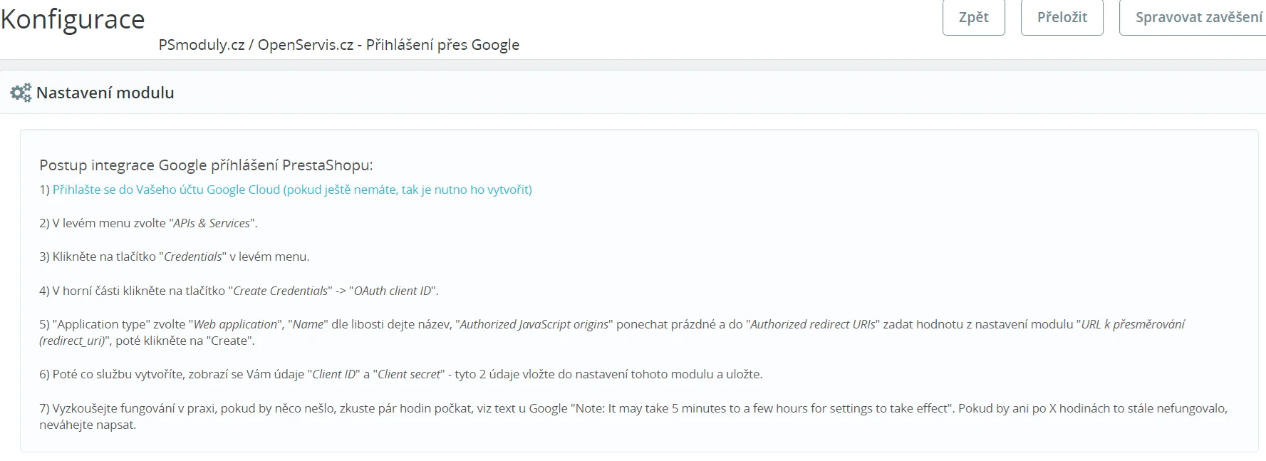 | Název modulu na FTP | shaim_google_prihlaseni |
