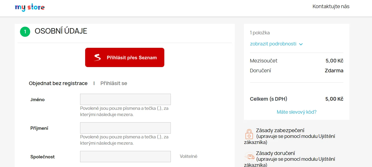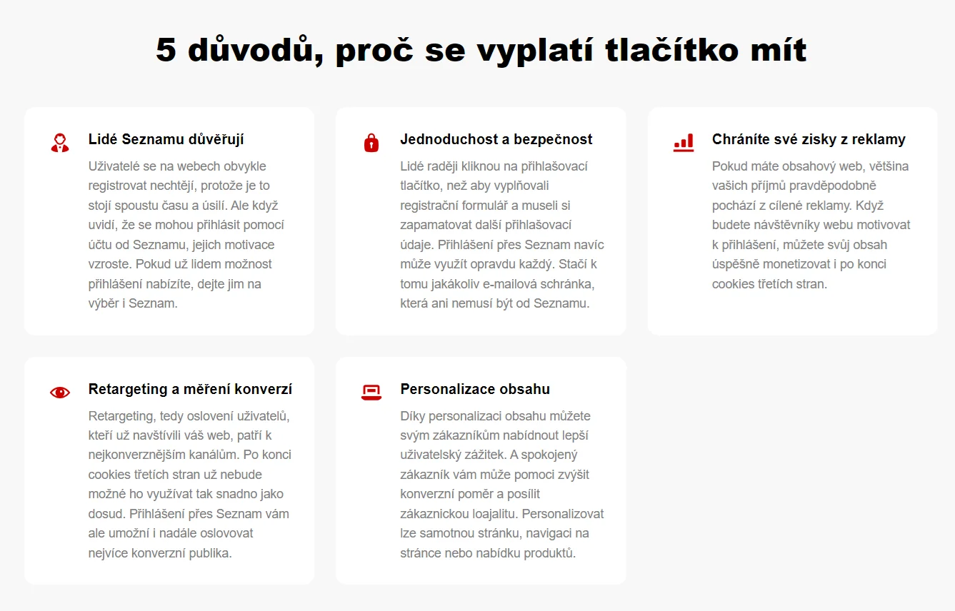 Pohodlné přihlášení pro zákazníky, kteří mají účet u seznamu. Trochu zvedl konverzní poměr.