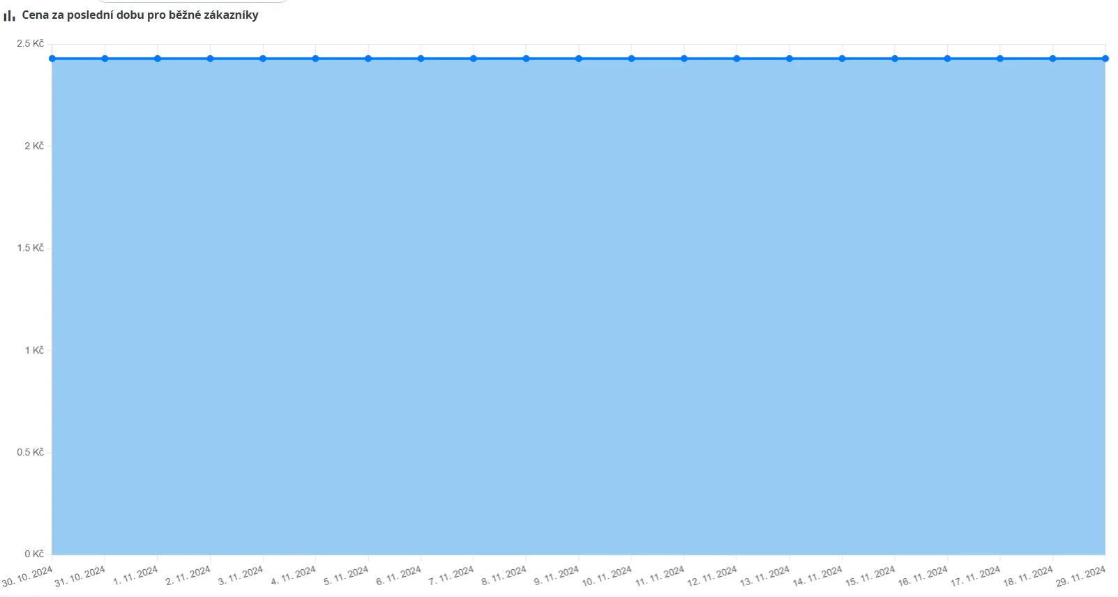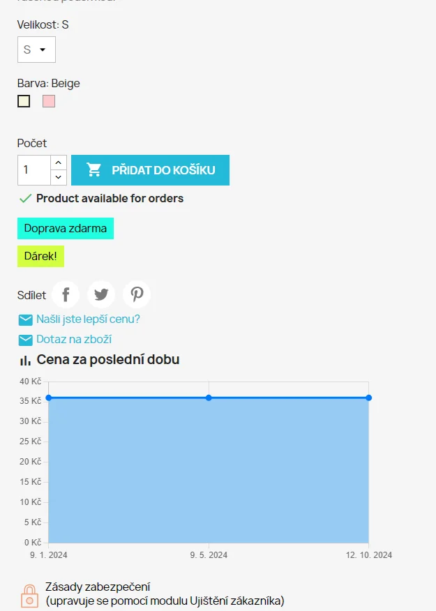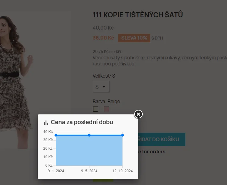 Modul zobrazuje změny v ceně za posledních X dní dle nastavení, a to přehledně v grafu. Tento vizuální prvek umožňuje zákazníkům snadno posoudit, zda se nejedná o uměle vytvořenou cenu.