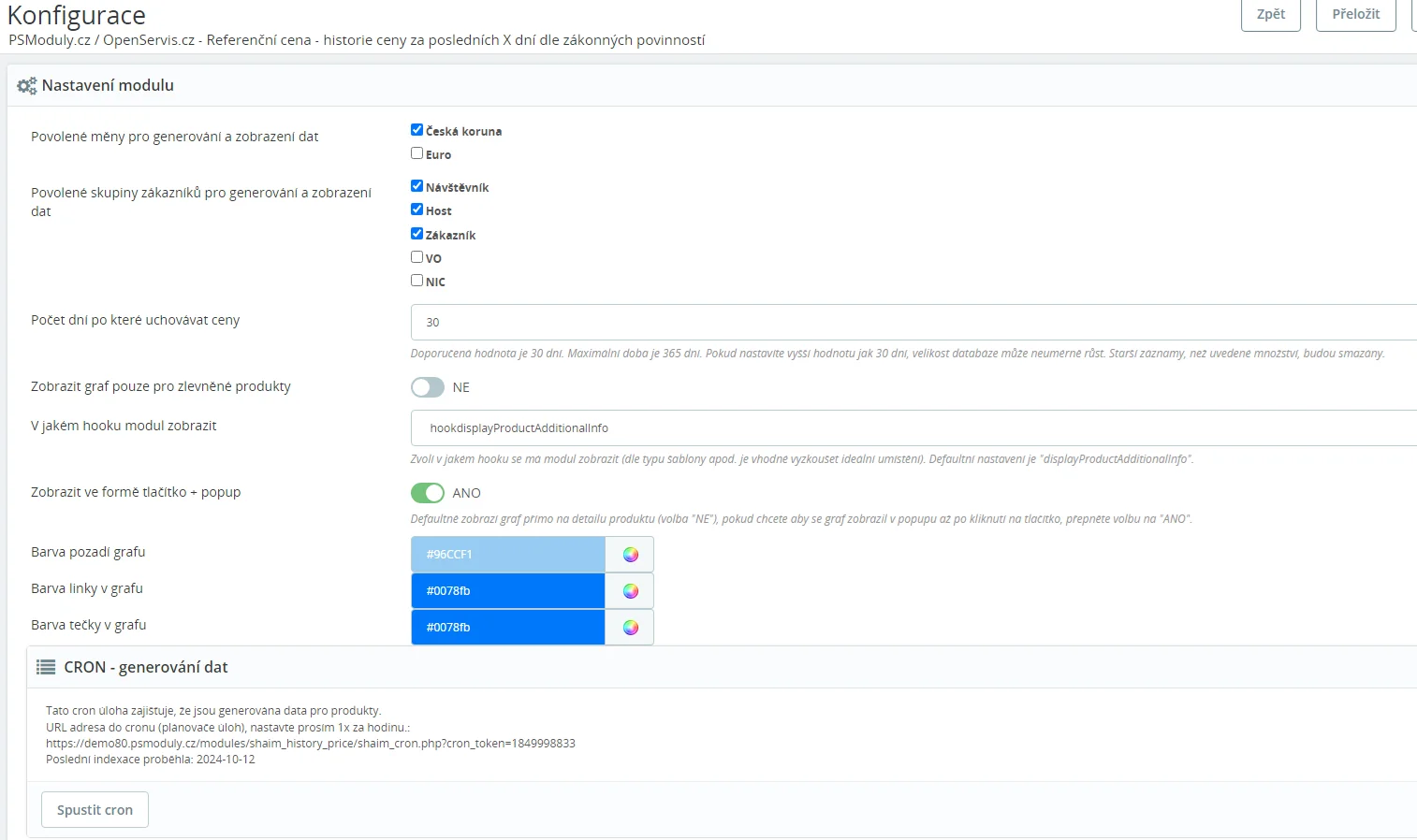 Modul funguje bez problémů a ukazuje vše co má. Mohu ho doporučit všem, kteří potřebují mít na webu historii cen.