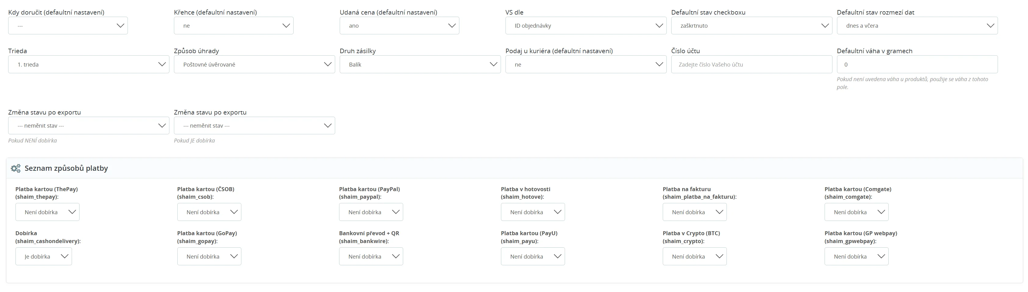Modul nabízí flexibilitu při výběru času doručení zásilky, a to buď dopoledne, nebo odpoledne. Dále máte možnost zvolit, zda chcete zásilku označit jako křehkou, a také zda má být uvedeno pojištění v reálné výši zásilky.