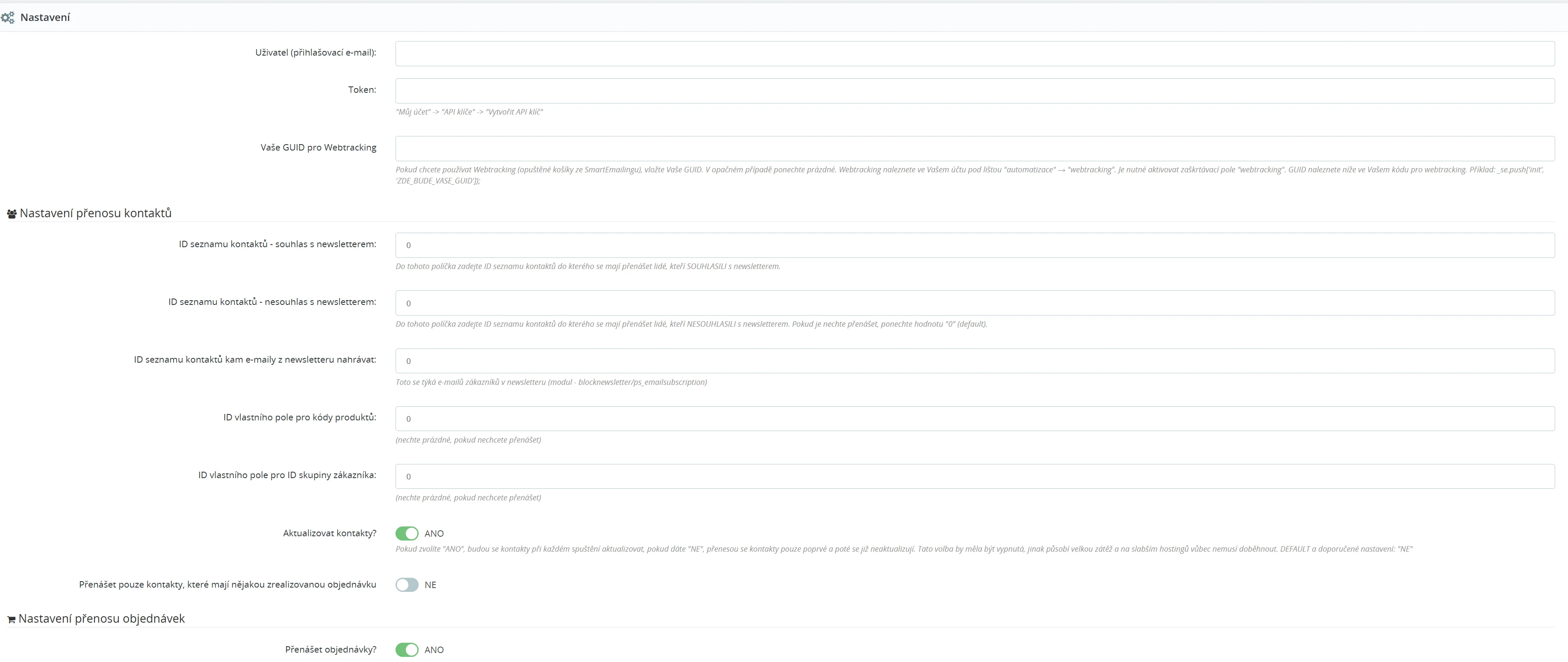 Skvělý modul na propojení Smartemailingu a PS. Funguje přesně tak, jak má :-)