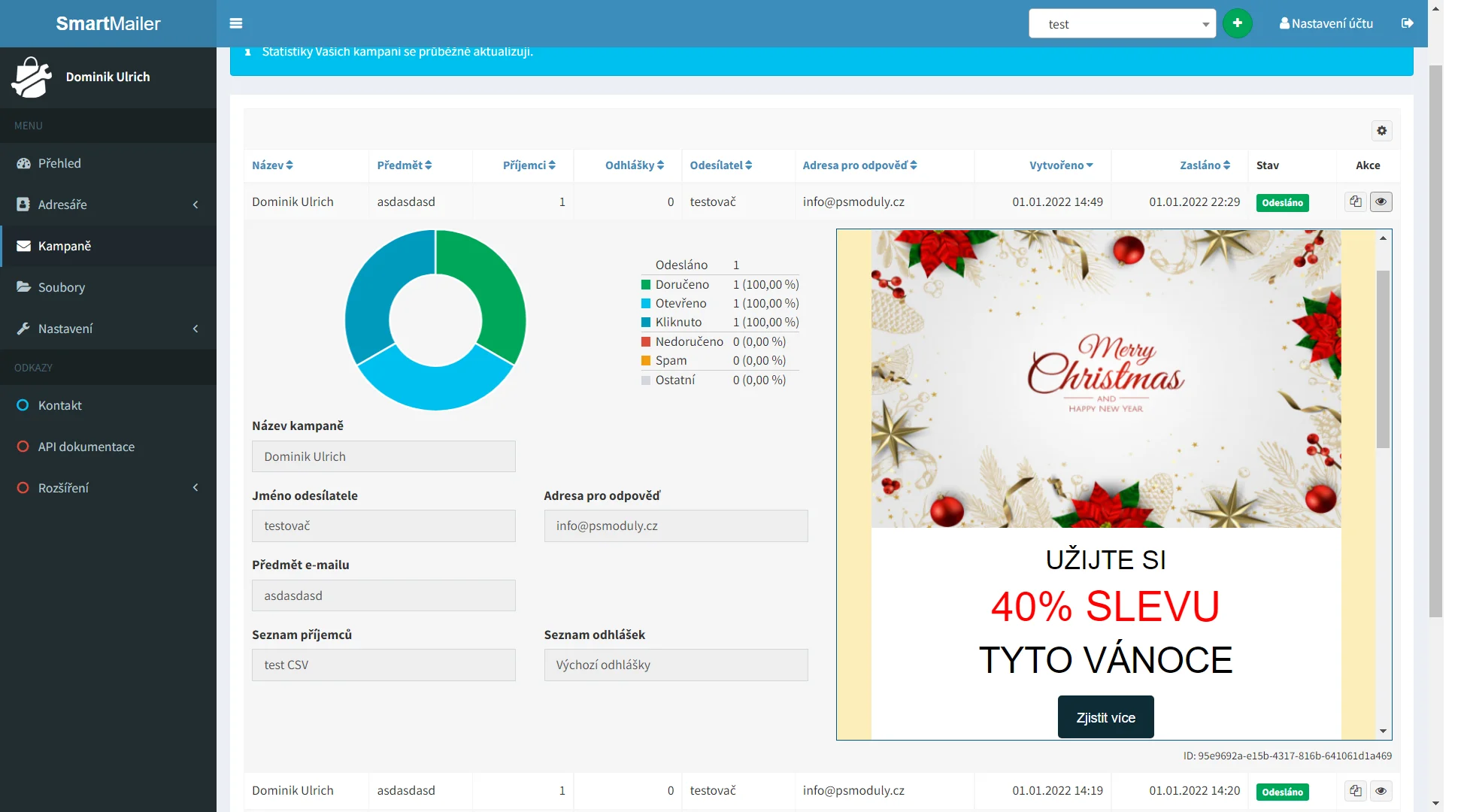 Rozesílání newsletteru z Vašeho e-shopu není ta správná cesta. Modul umí napojit službu smartmailer.cz, která je naprosto ideální pro jakýkoliv newsletter. Vysoká doručitelnost. Jednoduché nastavení. Spousta instruktážních videí.
