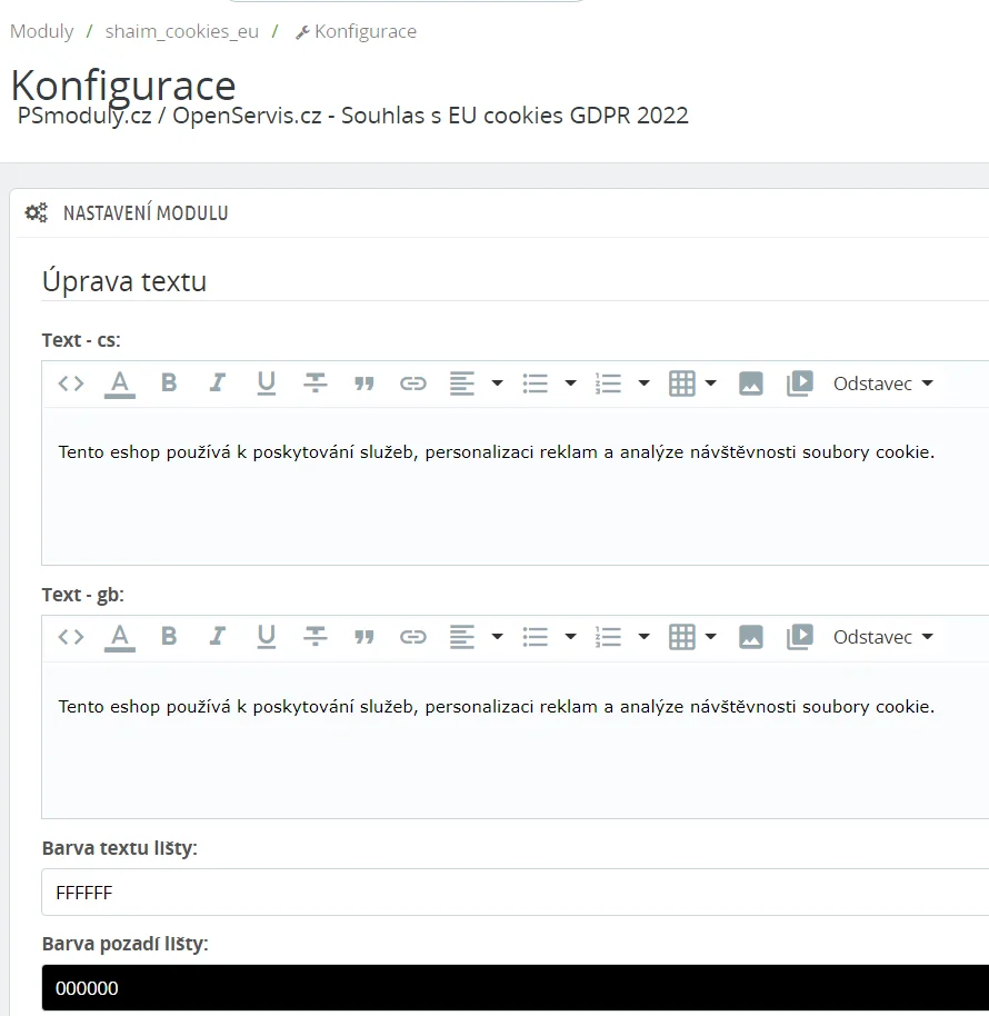 Výborný modul, který jednoduše řeší povinnost ze zákona. Jednoduché, rychlé. Stačí nainstalovat a je splněno.