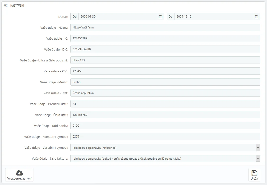 Modul zajišťuje exportování XML feedů pro účetní systém PROFIT a to jak objednávky, tak faktury. Díky tomu budete moci na pravidelné bázi přenášet data do Vašeho účetního systému a zde s nimi dále pracovat.