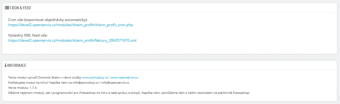 | Název modulu na FTP | shaim_profit_export |