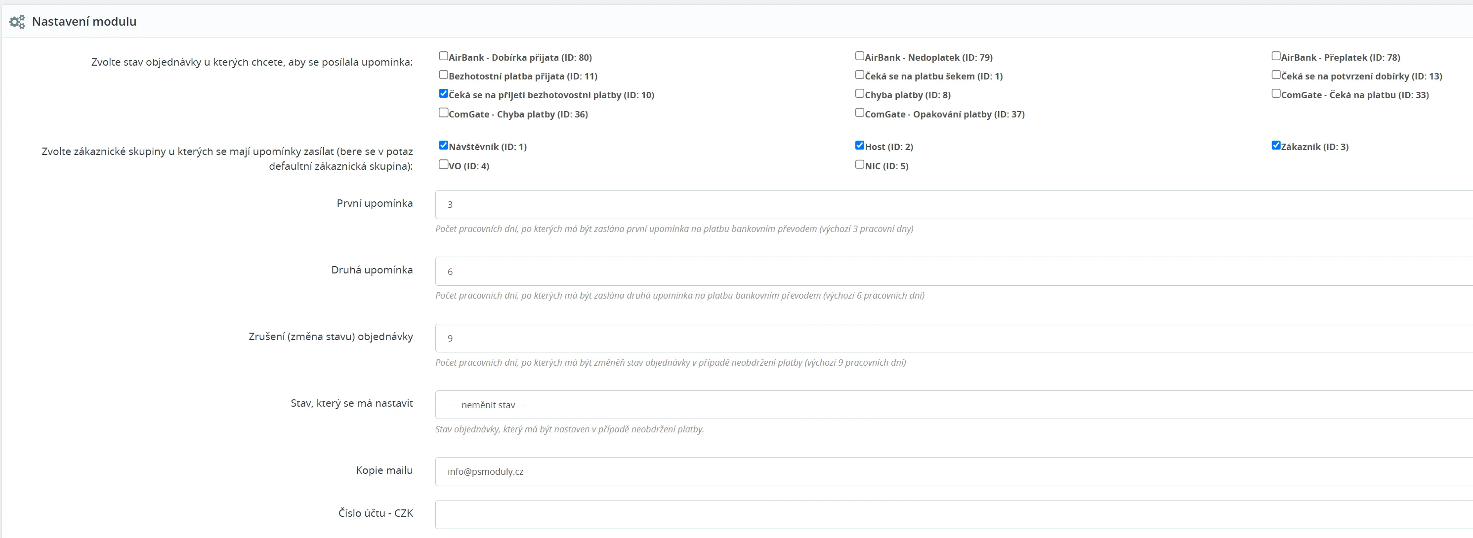 Skvělý modul, doufáme, že upomínání zákazníků přispěje k méně opomenutým objednávkám.
