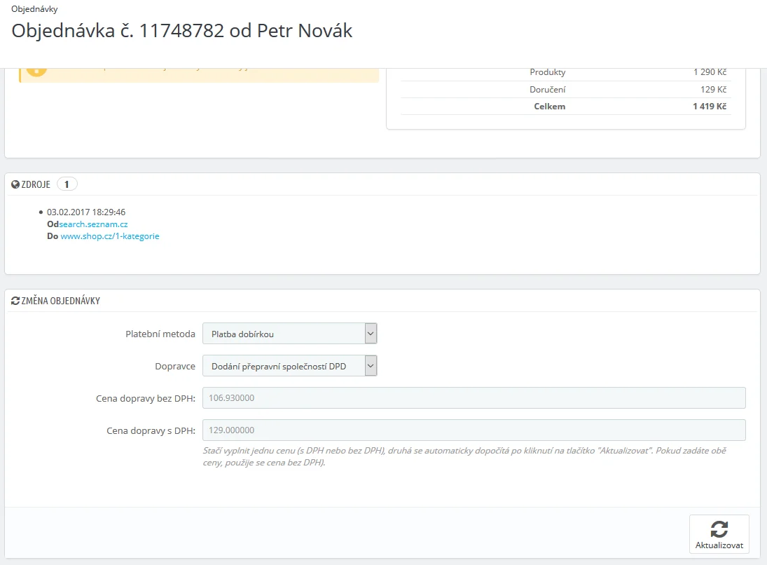 Modul také umožňuje měnit cenu za dopravu a platbu, což je užitečné zejména v situacích, kdy je třeba zohlednit dodatečné náklady, například za dobírku. Tato flexibilita přispívá k lepší správě objednávek a zvyšuje spokojenost zákazníků.
